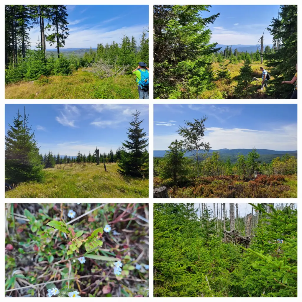 S průvodkyní z NP Šumava jsme vyrazili na prima výlet divočinou. Trasa vedla z Františkova kolem Památníku králů Šumavy na vrchol Vysoký stolec. Poznávali jsme mechy a kapradiny, ochutnávali troudnatce a pryskyřici. Zkoumali jsme lýkožroutské cestičky, chůdové kořeny, poznávali květenu …Přes Stolovou horu jsme došli na vrchol Stráž s pěknou vyhlídkou, pak jsme spadli k pramenům Vltavy a znovu vylezli na Černou horu. Procházeli jsme i klidovou zónou přes popadané stromy, krásně divokou stezkou. Paní průvodkyně byla skvělá, i její pejsek.