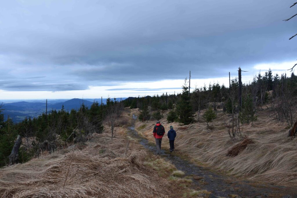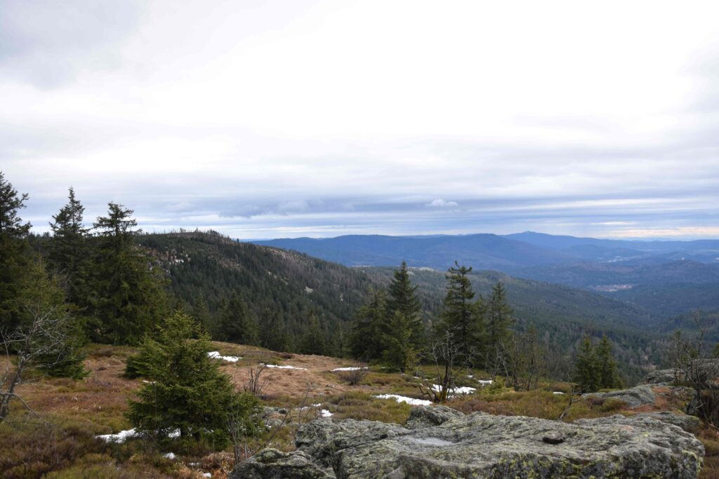 Na Svaroh se legálně stále z české strany nedostanete, leda byste šli z Ostrého. My chodíme z německé strany, různými stezkami se tam dá celkem pohodlně dojít. Krásná je cesta po hranici Svaroh – Velký Kokrháč, kolem hraničních kamenů. Cestou se otevře pěkný výhled na Ostrý.